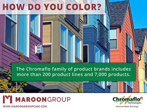 Color is an important aspect of any finished products and at Maroon Group we are asking all of our customers, "How are you coloring your products today and how can we help enhance the color of your product tomorrow?" Maroon Group is proud to distribute colorants from Chromaflo Technologies, the premier, global, independent provider of colorant technology solutions, serving customers in architectural and industrial coatings, as well as the plastic, adhesive, sealant, and construction markets.